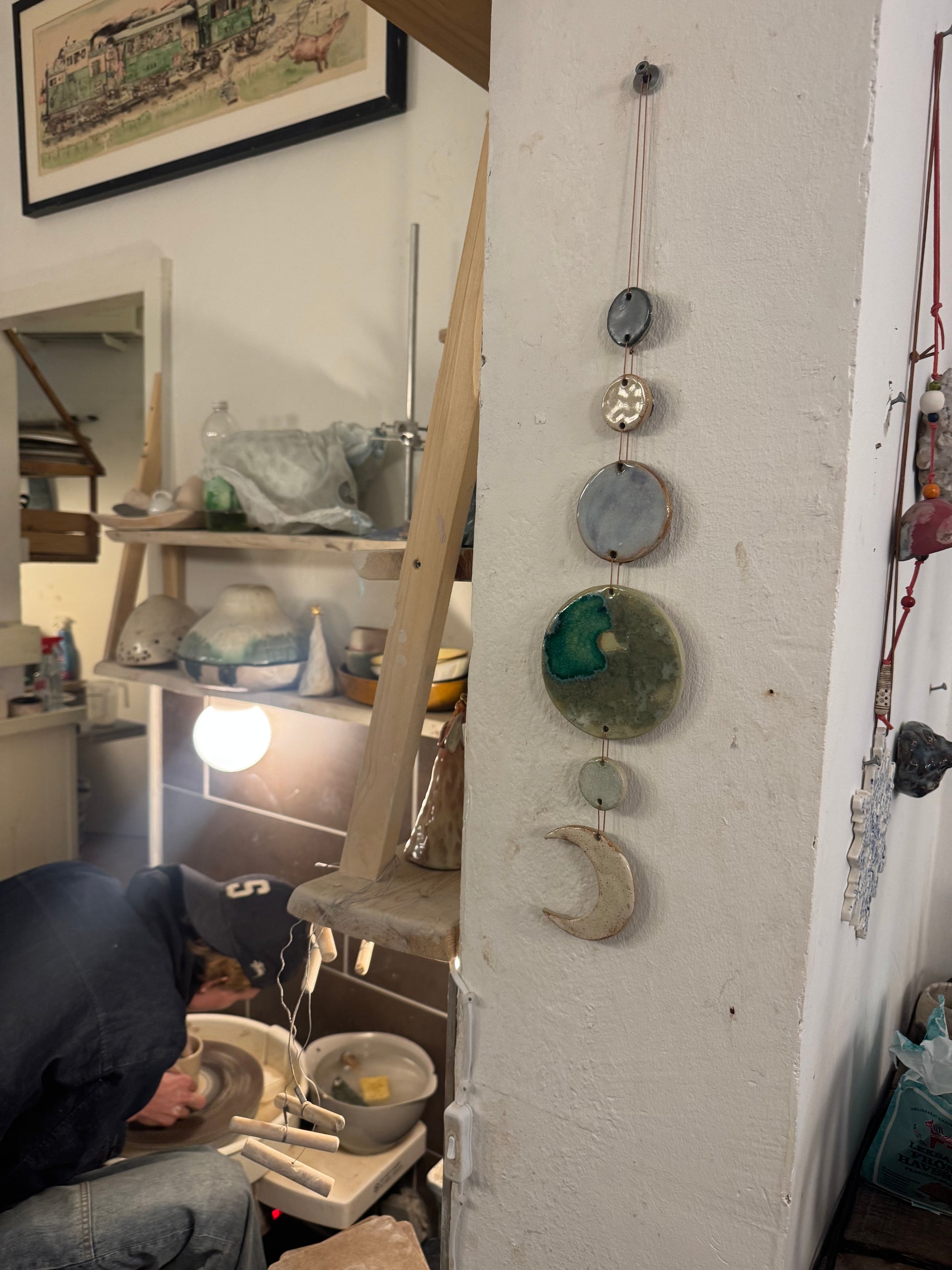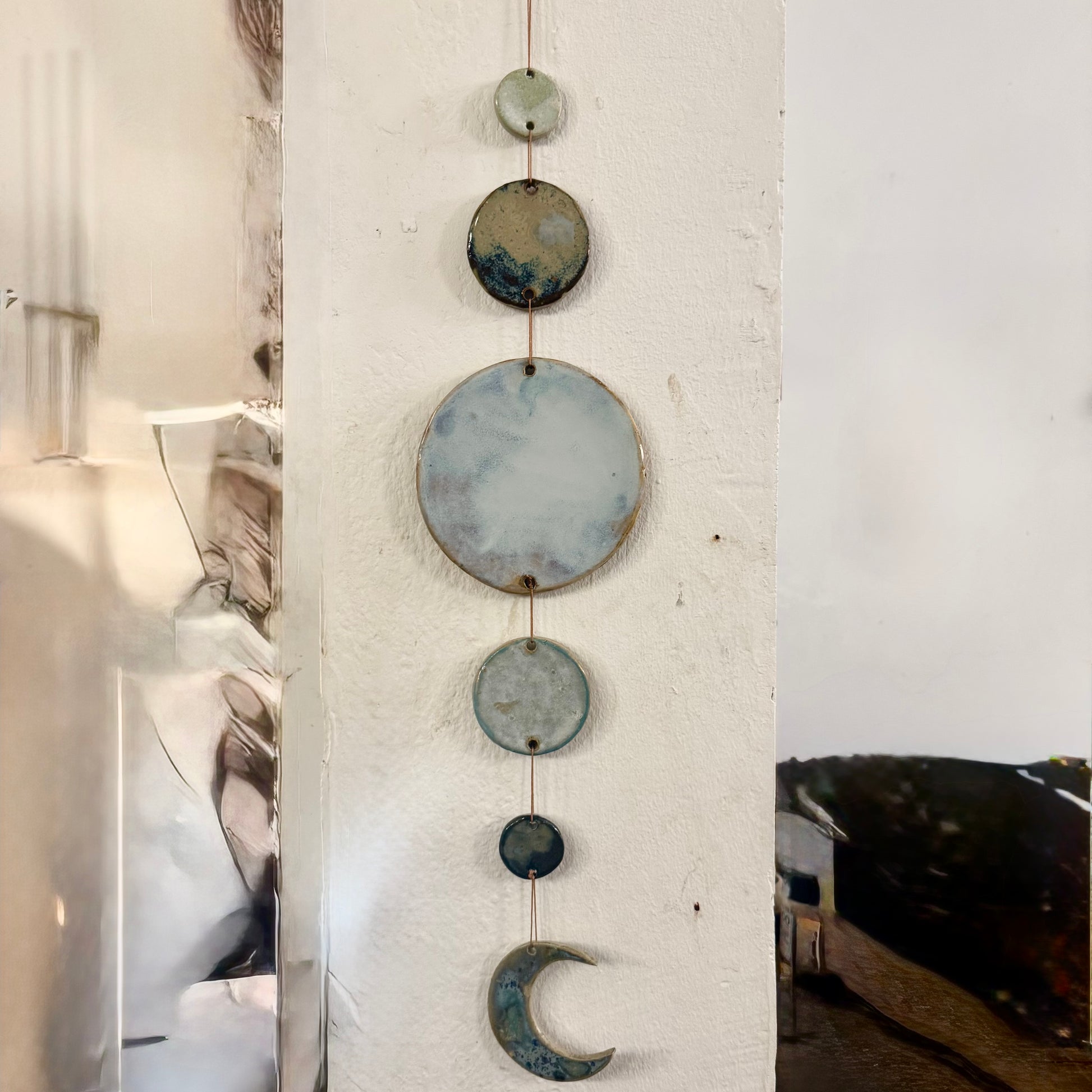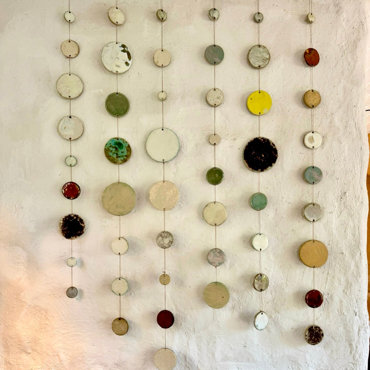 Ophæng af små cirkler. Jeg sælger dem også enkeltvis og der kommer nye farver op jævnligt.