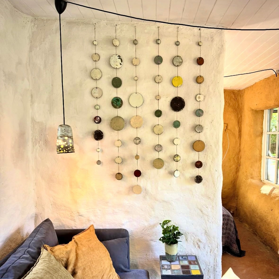 Planeter til ophæng. Tanken er at man selv samler til en tråd eller mange tråde af de farver der passer. Jeg laver nye hele tiden, men her i opstarten har jeg ikke så stort et udvalg